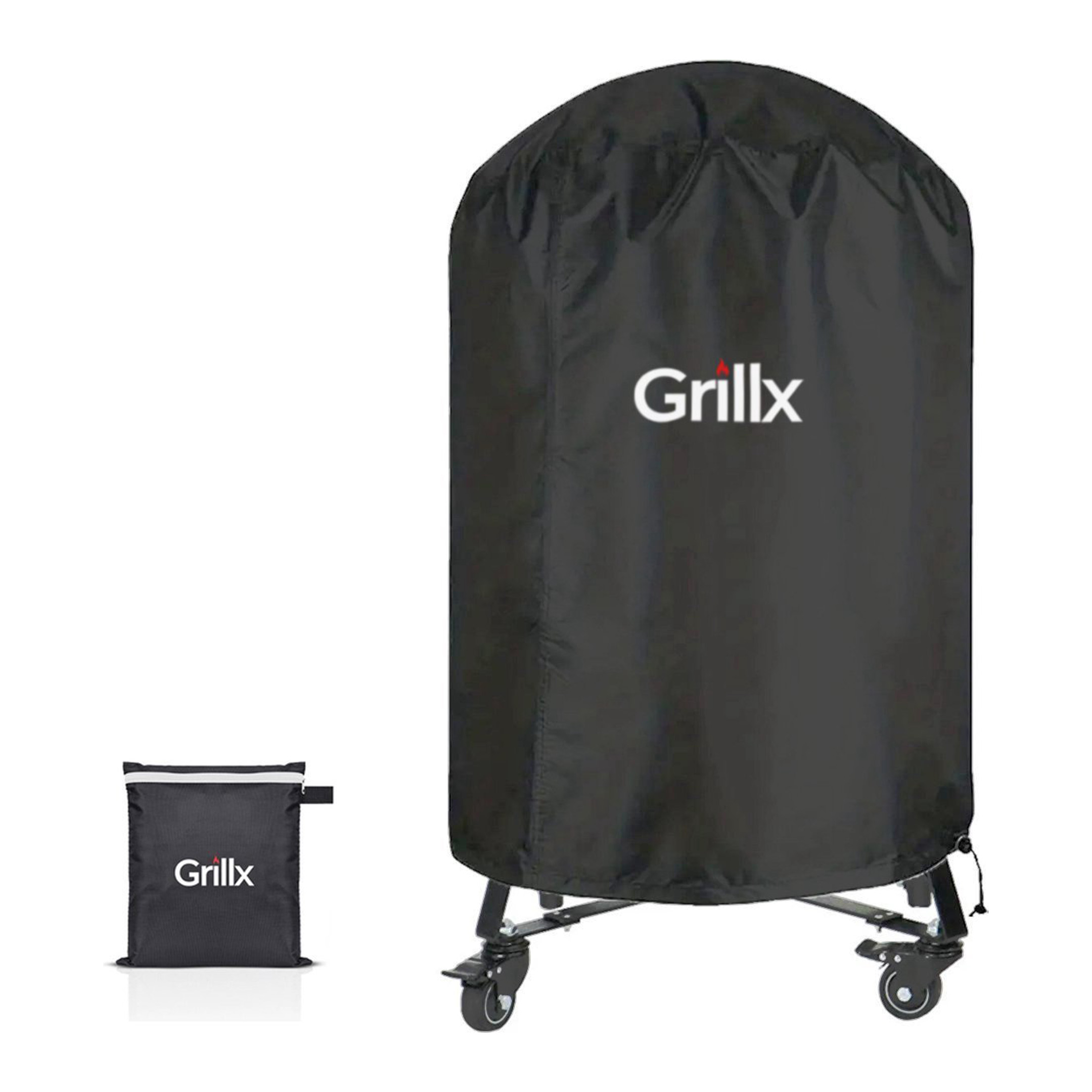 Bescherm je kamado barbecue tegen zonnestralen, regen, sneeuw en roest met de barbecue hoes van GrillX. De barbecue hoes is gemaakt van sterk polyester en is opgebouwd uit verschillende lagen, hierdoor is de hoes waterdicht en uv-bestendig. De hoes is 40 breed, 40 cm diep en 50 cm hoog. De hoes beschikt over een trekkoord waardoor de hoes strak om de barbecue kan worden bevestigd. De hoes past hiermee om de meeste 13 inch kamado barbecues. Houd je barbecue zoals nieuw met deze barbecuehoes!