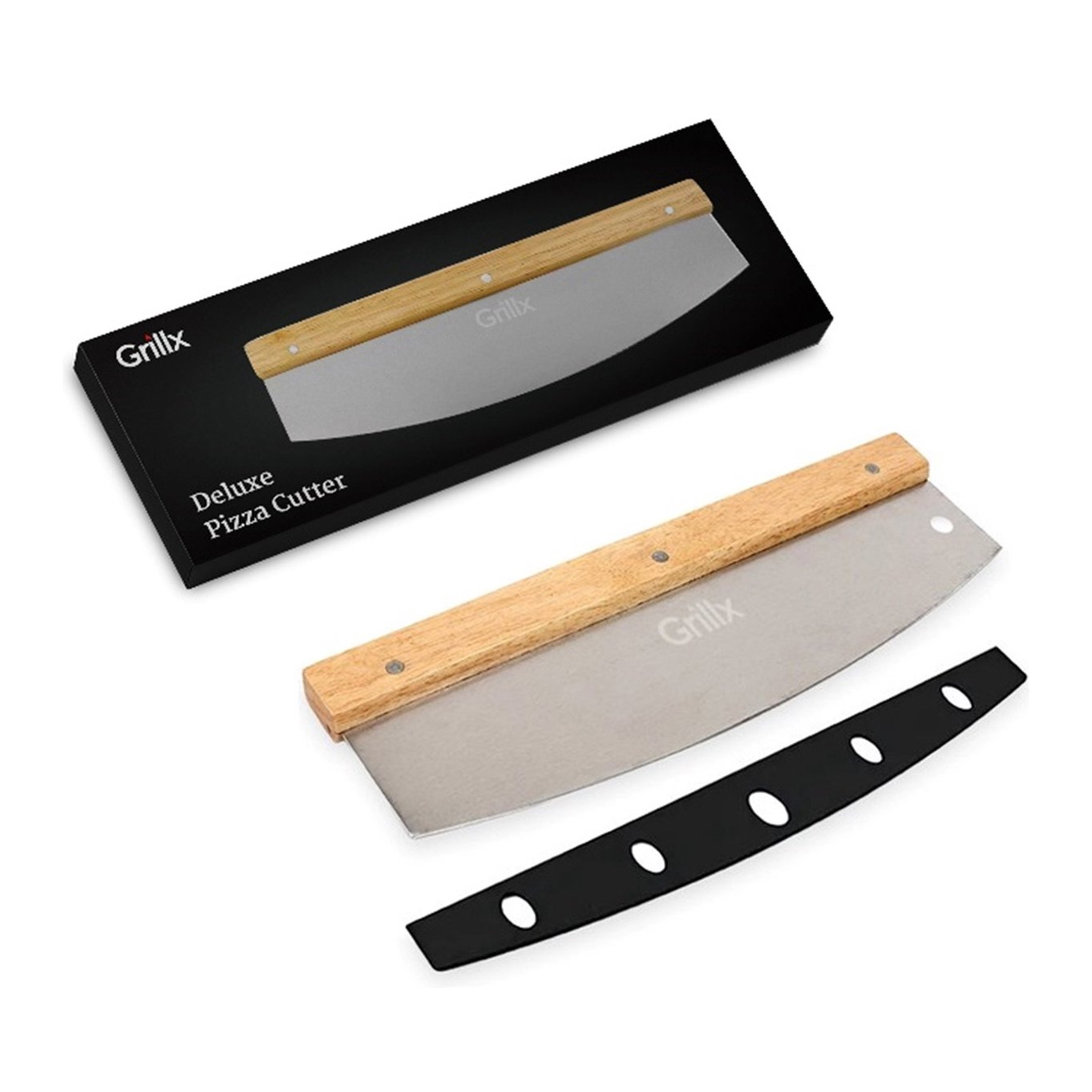 Ontdek de GrillX Luxe Pizzasnijder! Deze professionele pizzames is jouw ultieme partner voor het snijden van de lekkerste pizza’s. Met een houten handvat en een roestvrijstalen wiegemes, biedt de GrillX Pizzasnijder een ongeëvenaarde kwaliteit en prestaties. Hang de pizzasnijder eenvoudig op aan het ophangoog.